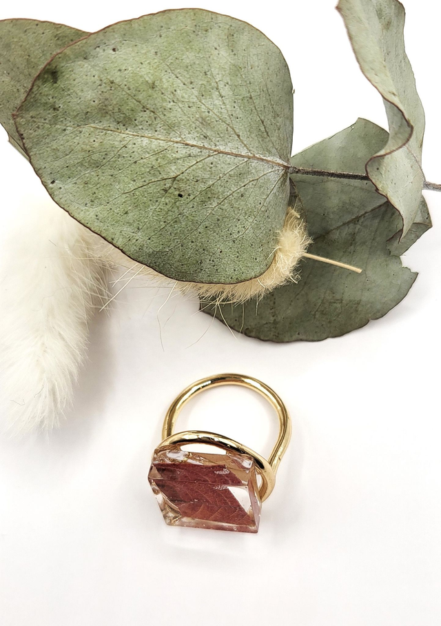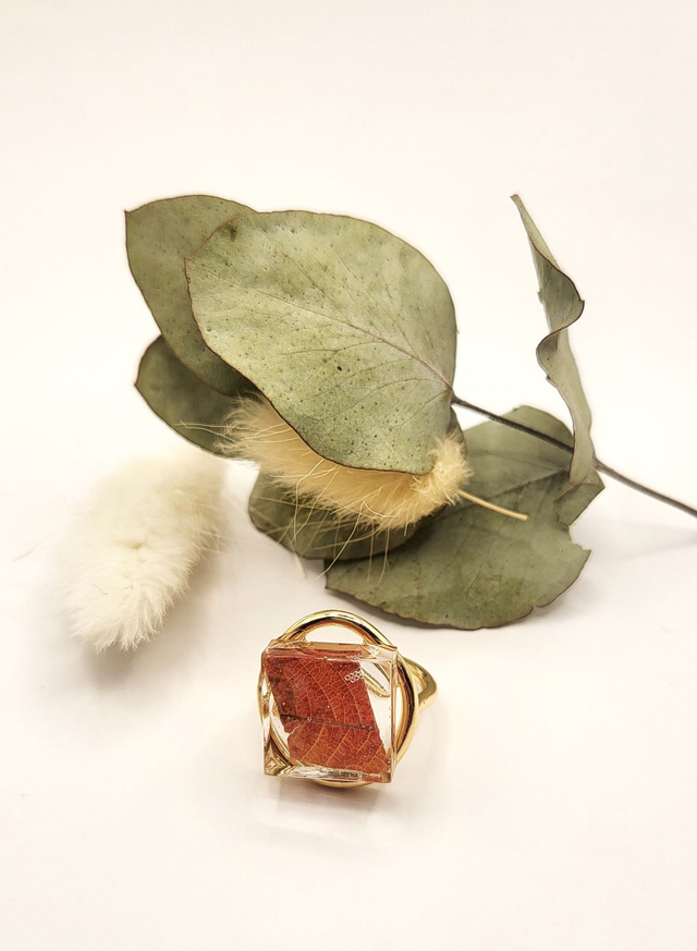 Bague feuille séchée, forme carrée