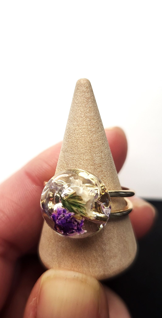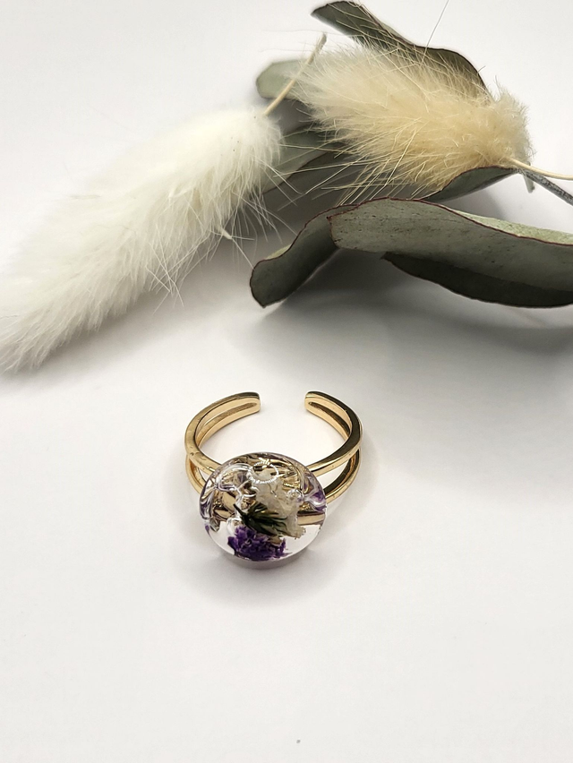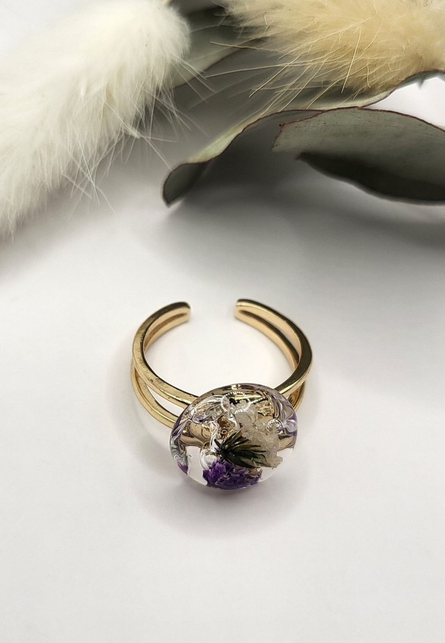 Bague fleurs séchées et résine - forme ronde