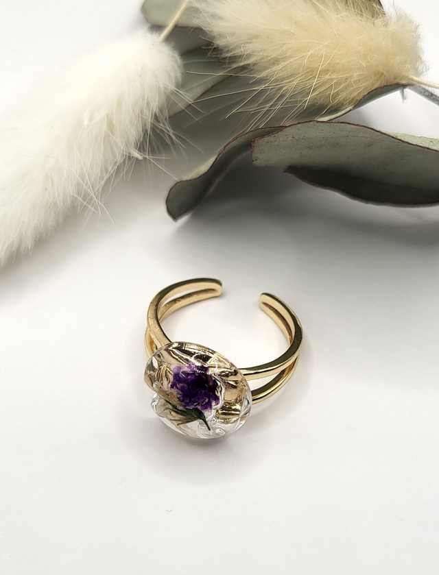 Bague artisanale fleurs séchées & résine – Pièce unique